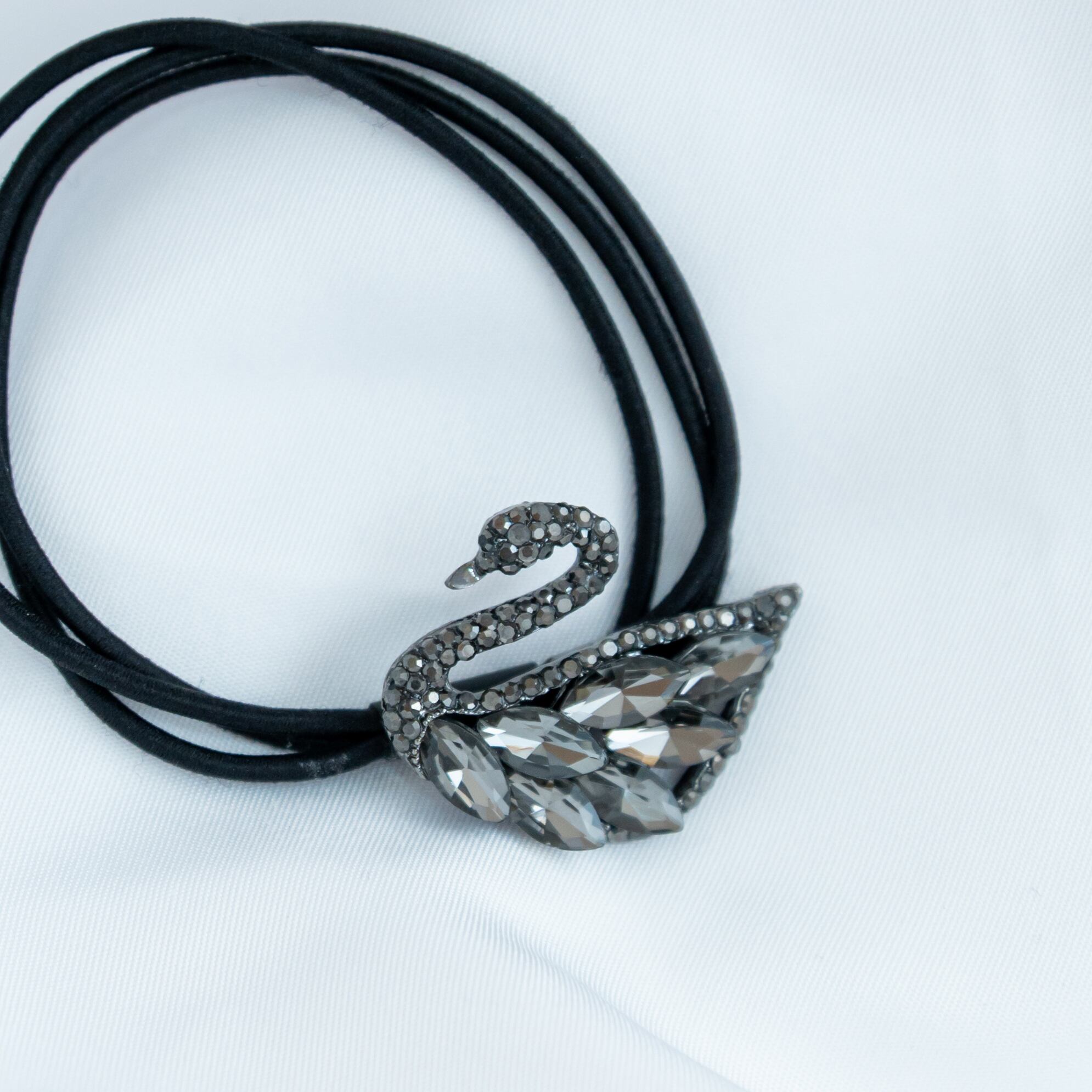 キラキラビジューのスワンがついたヘアゴム。